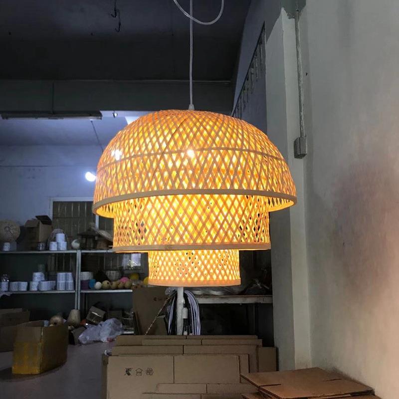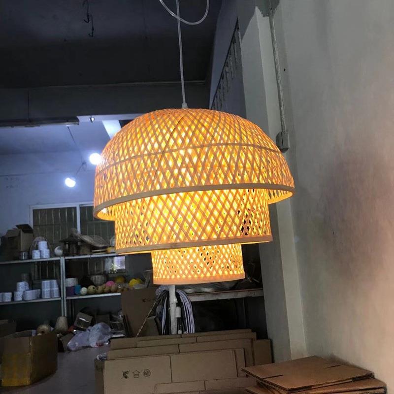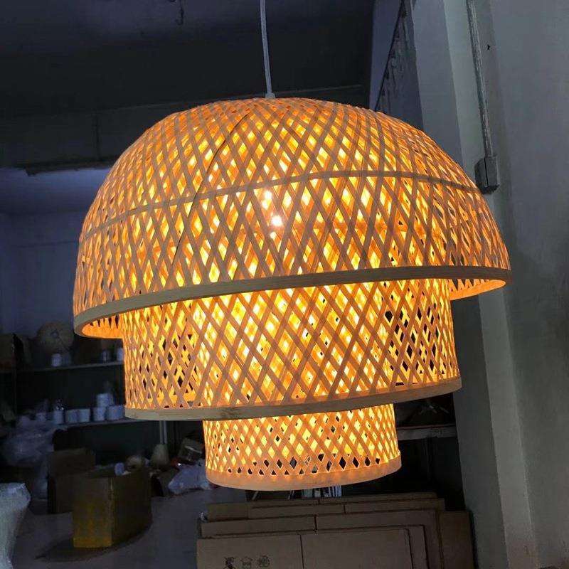 中式简约竹艺餐馆竹编吊灯田园餐厅吧台竹篾编织三层盖吊灯