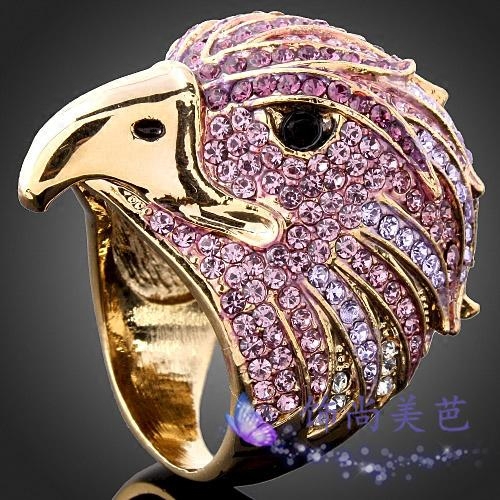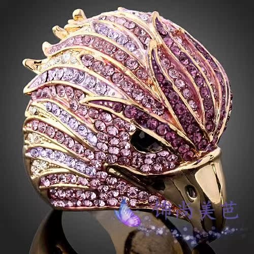 日韩时尚个性夸张戒指女士夜店潮人重金属鹰头指环紫色钻食指尾戒