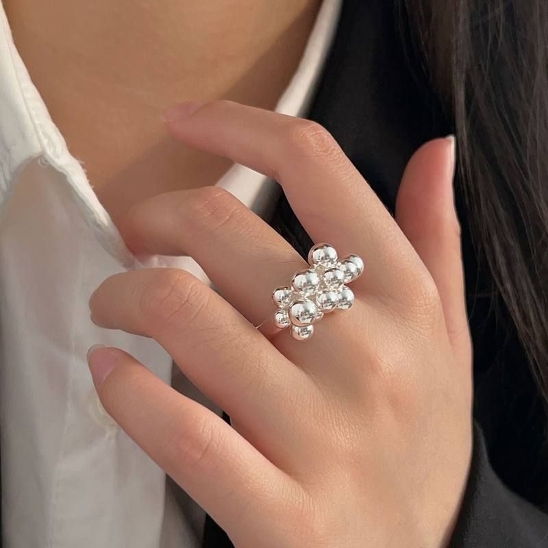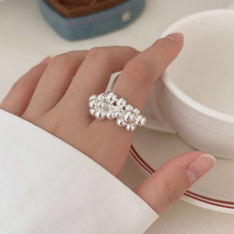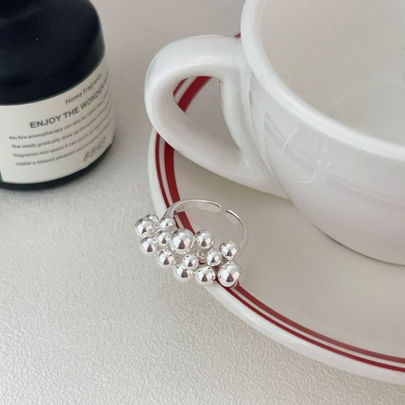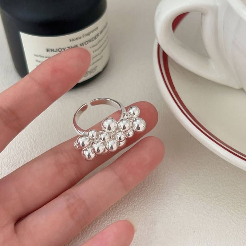 持恒S925纯银圆球葡萄串戒指女韩国东大门2024新款小众开口指环潮