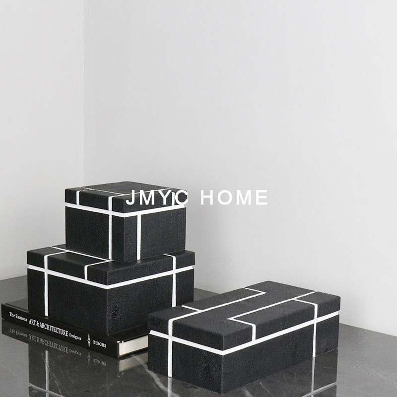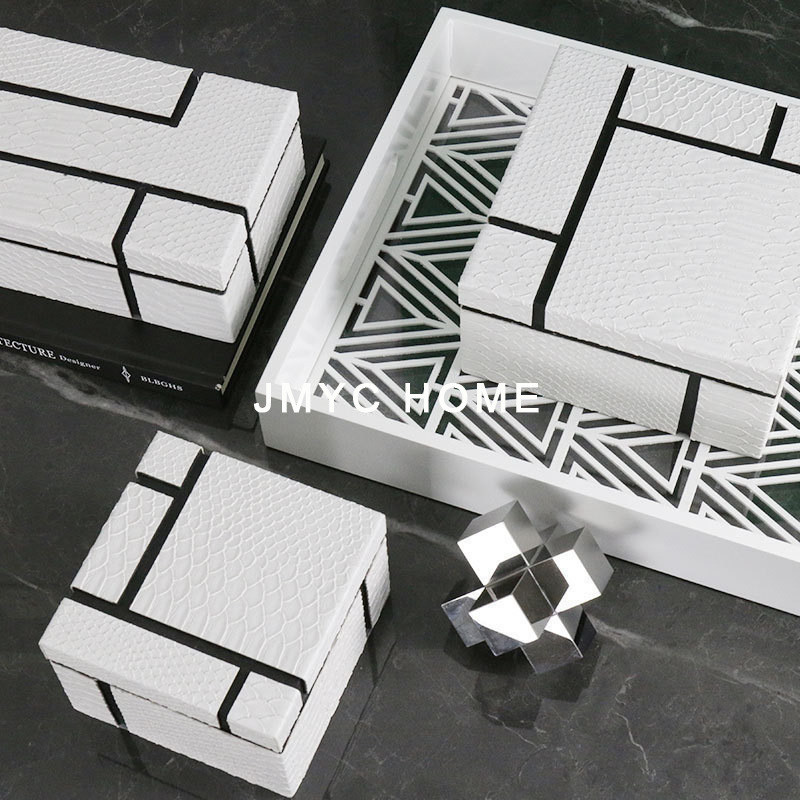 热销桌面pu皮革木质收纳盒样板房间简约现代首饰盒创意艺术软装饰