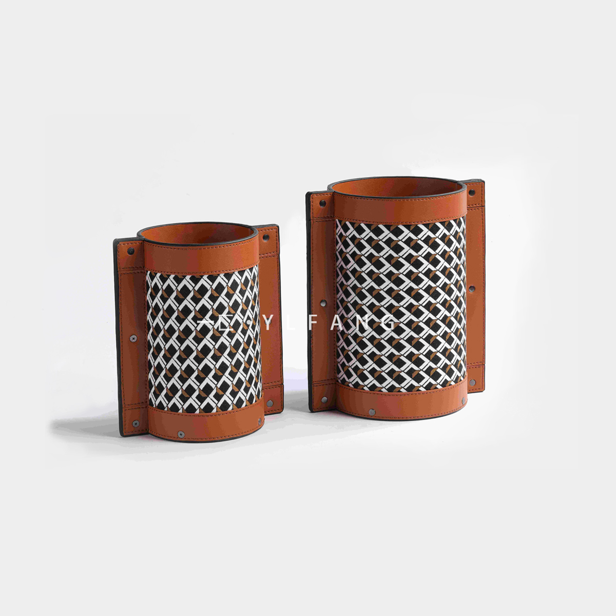 一匚 现代轻奢皮革条纹组合摆件 样板间收纳桶收纳盒收纳盘装饰