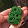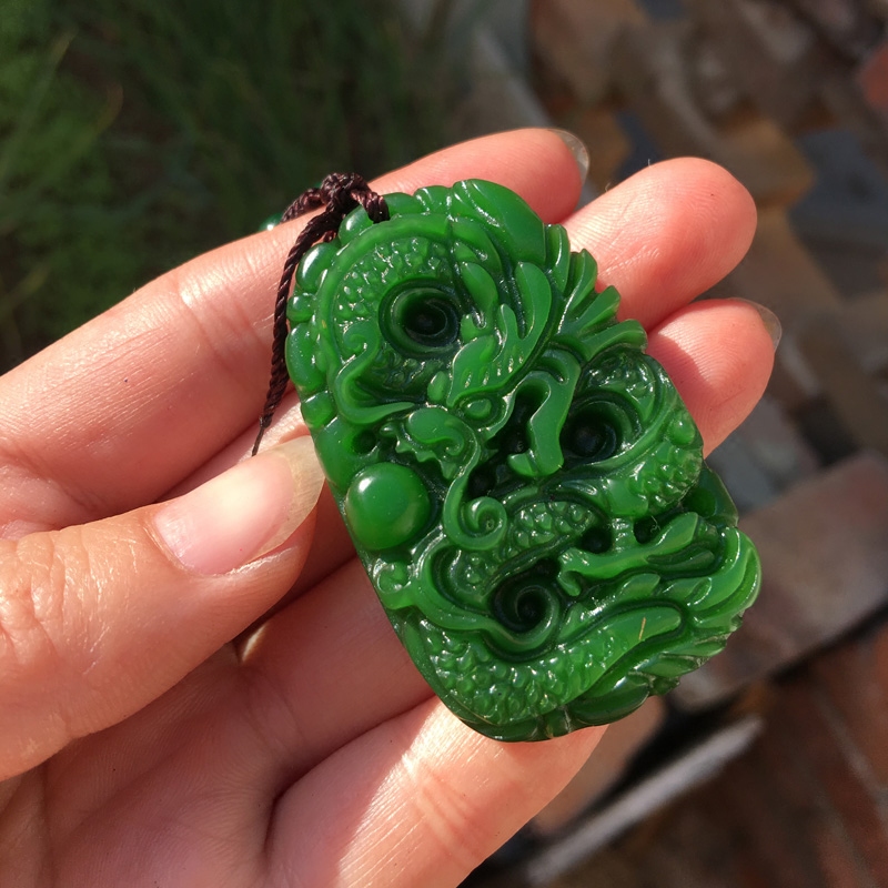 仿和田碧玉生肖龙吊坠转运护身菠菜绿游龙戏珠玉佩项链送证书