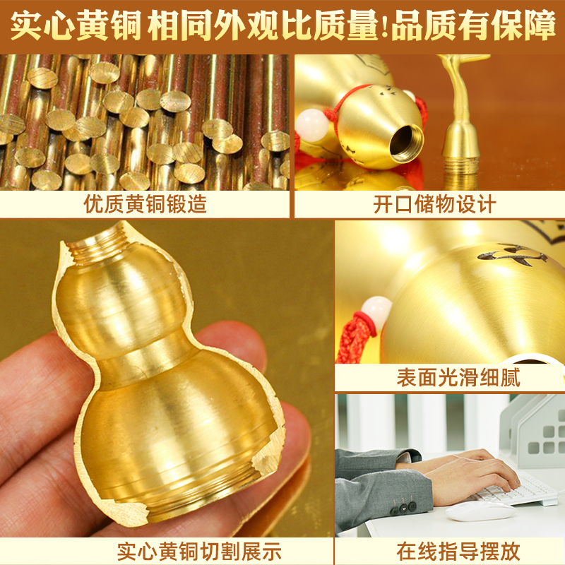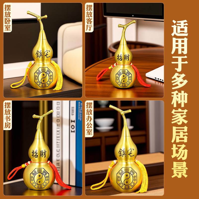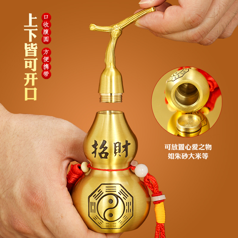 黄绳挂件开口铜葫芦装朱砂摆件空心客厅随身八卦天医小药瓶车挂饰