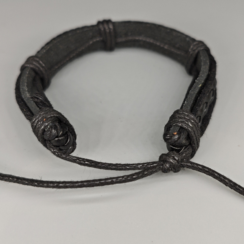 网红可调节黑色编织皮革手环潮流穿搭复古做旧手链朋克男
