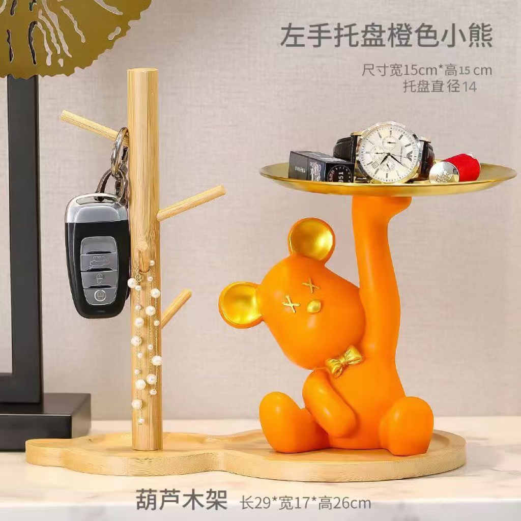 玄关钥匙收纳托盘摆件客厅办公桌面轻奢家居哈尼暴力熊生肖老虎猫