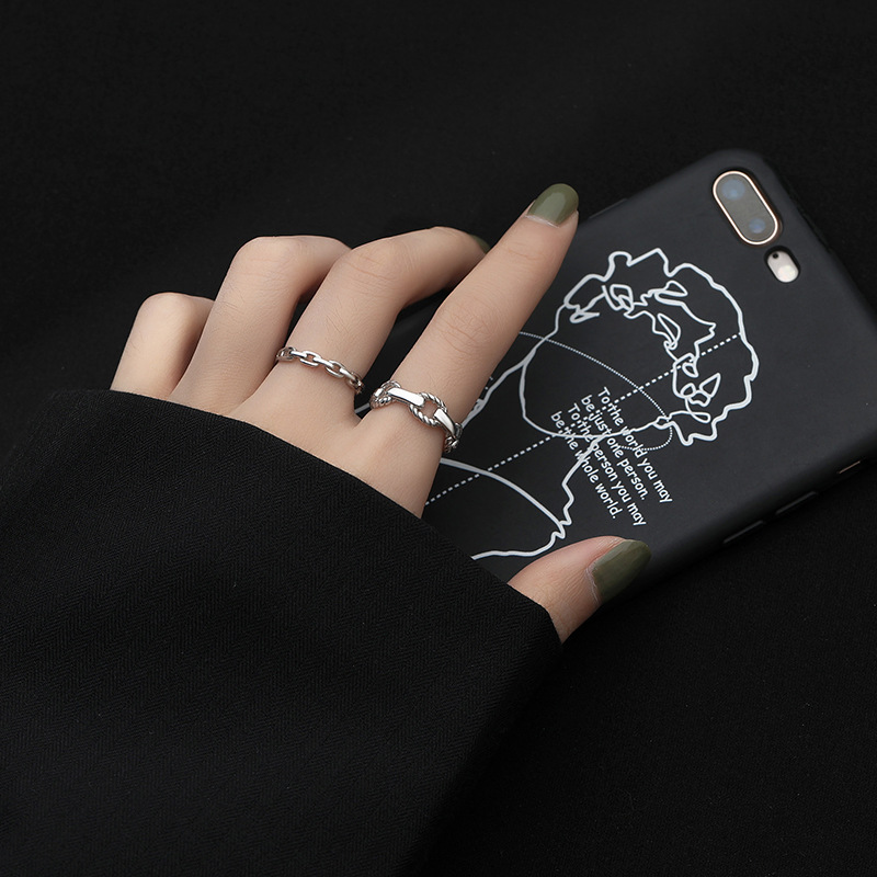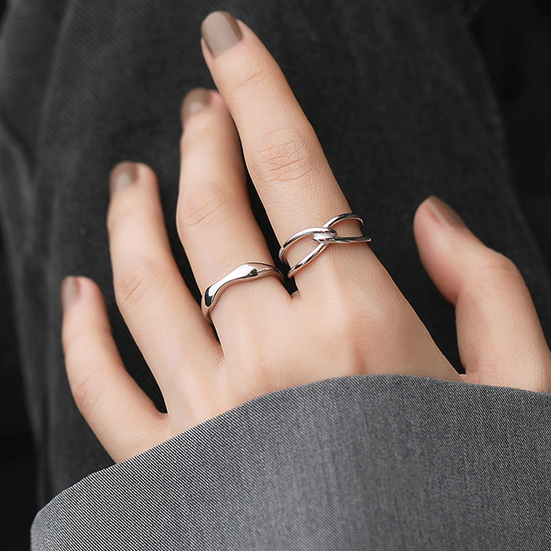 饰尚e族韩国小众简约叠戴复古戒指女ins个性百搭学生几何开口食指