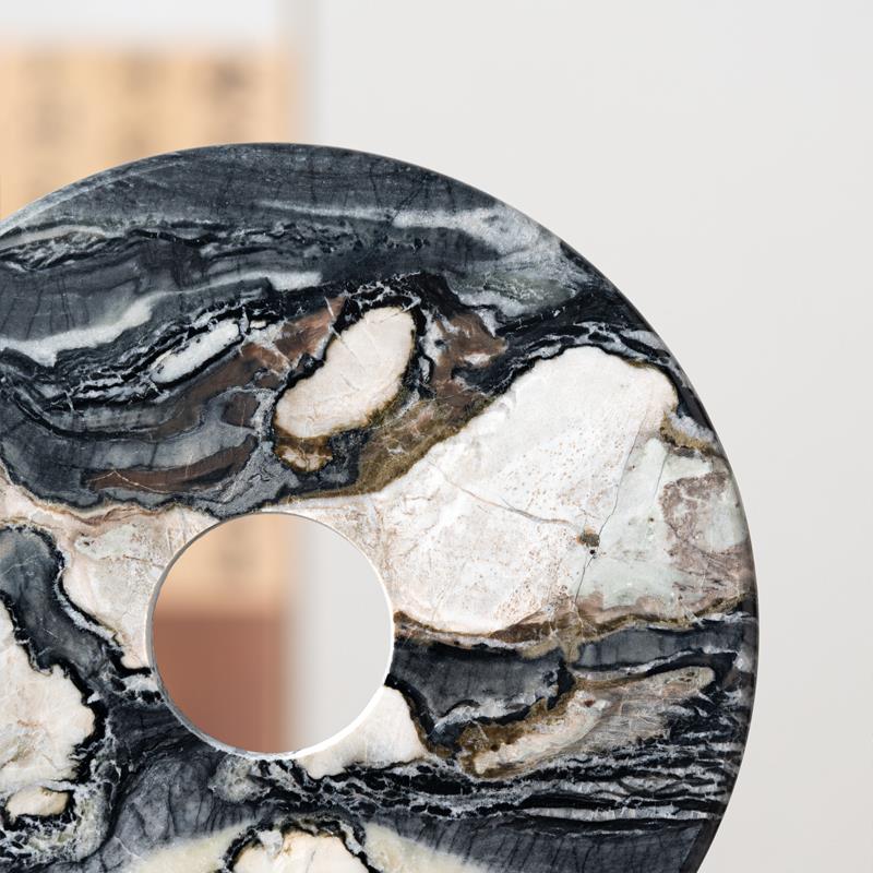 新中式天然纹理大理石同心圆玉扣高档摆件样板间客厅书房桌面装饰
