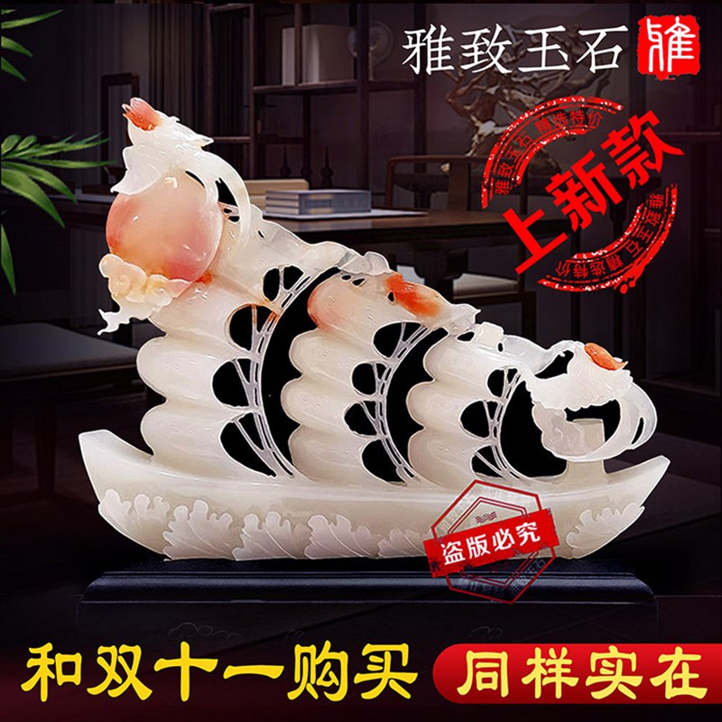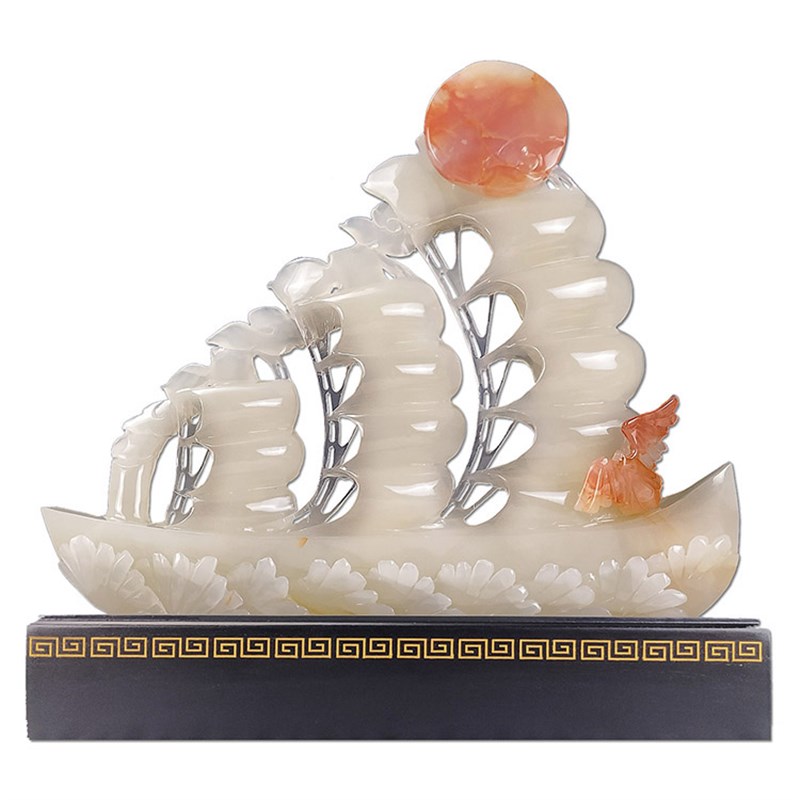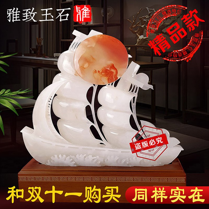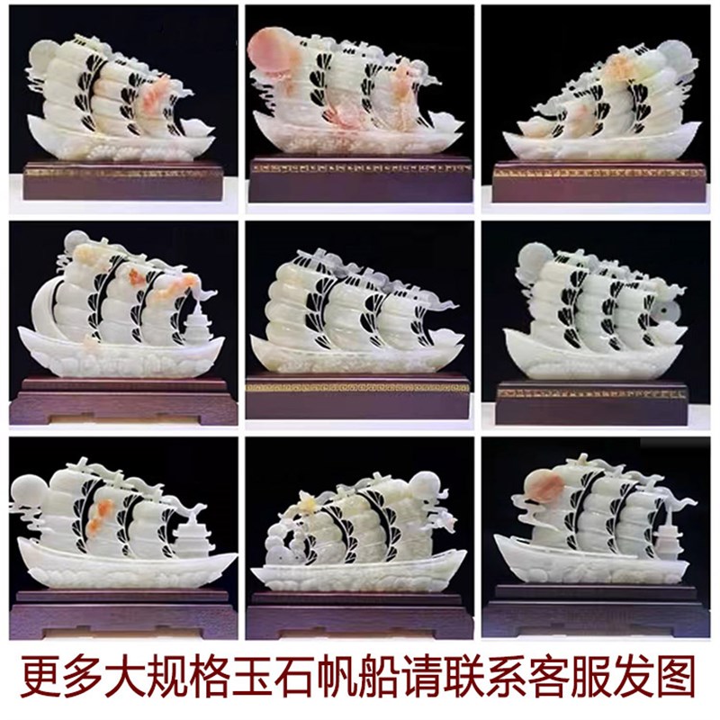 天然玉石一帆风顺帆船摆件乔迁新居客厅玄关办公室装饰开业礼品