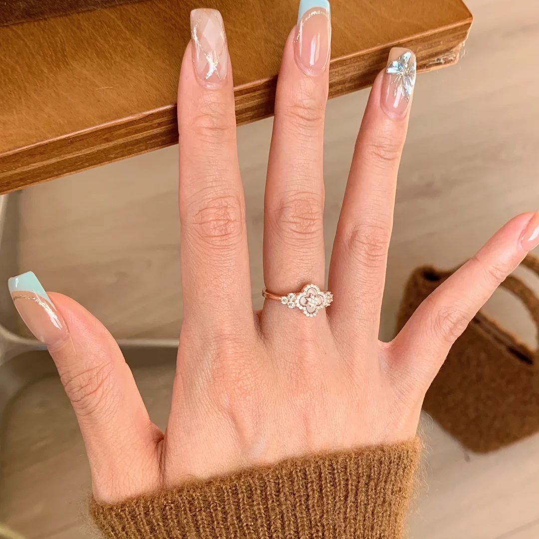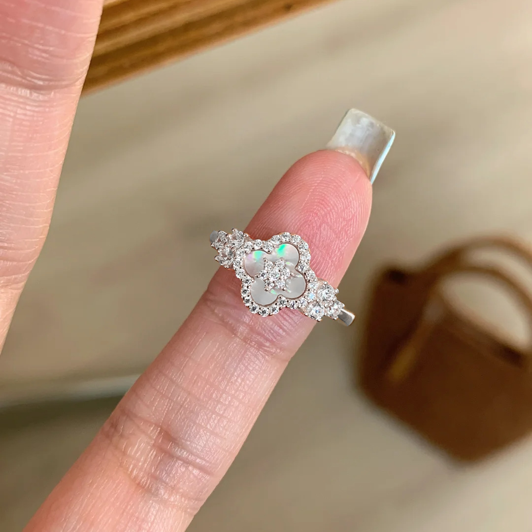 钻石之乡实验室人工培育钻意大利复古宫廷风天然粉贝母四叶草戒指