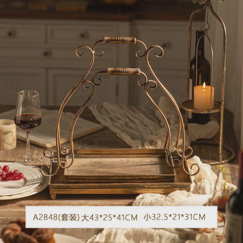 美式乡村托盘铁艺摆件可壁挂民宿装饰花篮工业风金属工艺品复古