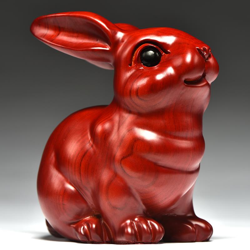 红色木质兔子摆件三合十二生肖木头兔家居补角缺角吉祥物开业送礼