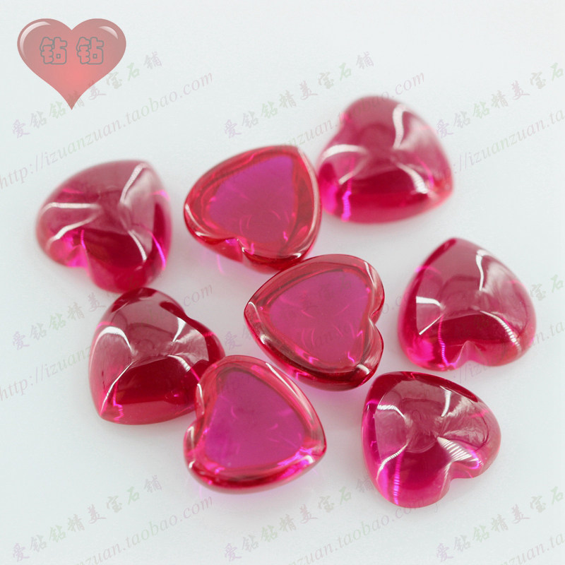 5#桃心形平底素面红宝石裸石 5号Ruby人造合成红刚玉戒面散珠DIY