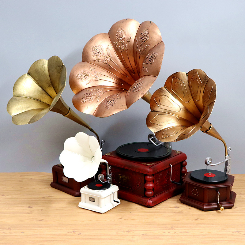 复古留声机欧式摆件 创意铁艺唱片机模型 家居摆T件装饰金属工艺