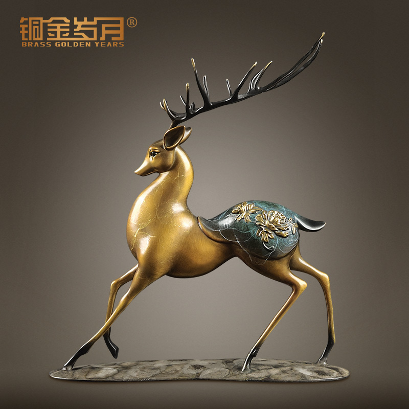 铜金岁月梅花鹿福鹿摆件新中式黄B铜鹿博古架酒柜家居工艺品装饰