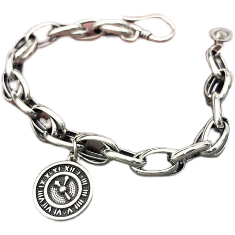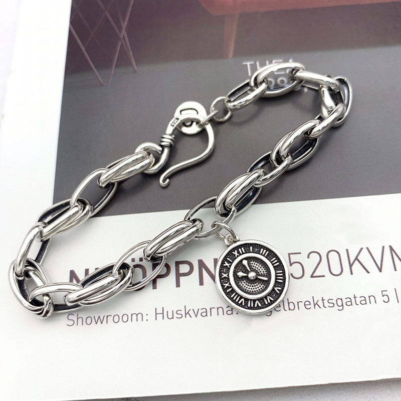 S925纯银数字时钟手链复古做旧女款时尚简约风个性手饰送女友礼物
