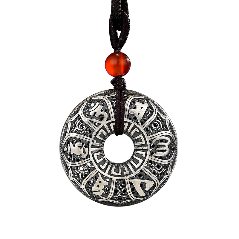 现货速发S0银六字真言镂空吊坠复古做旧吊坠饰品随身精美小吊坠cm