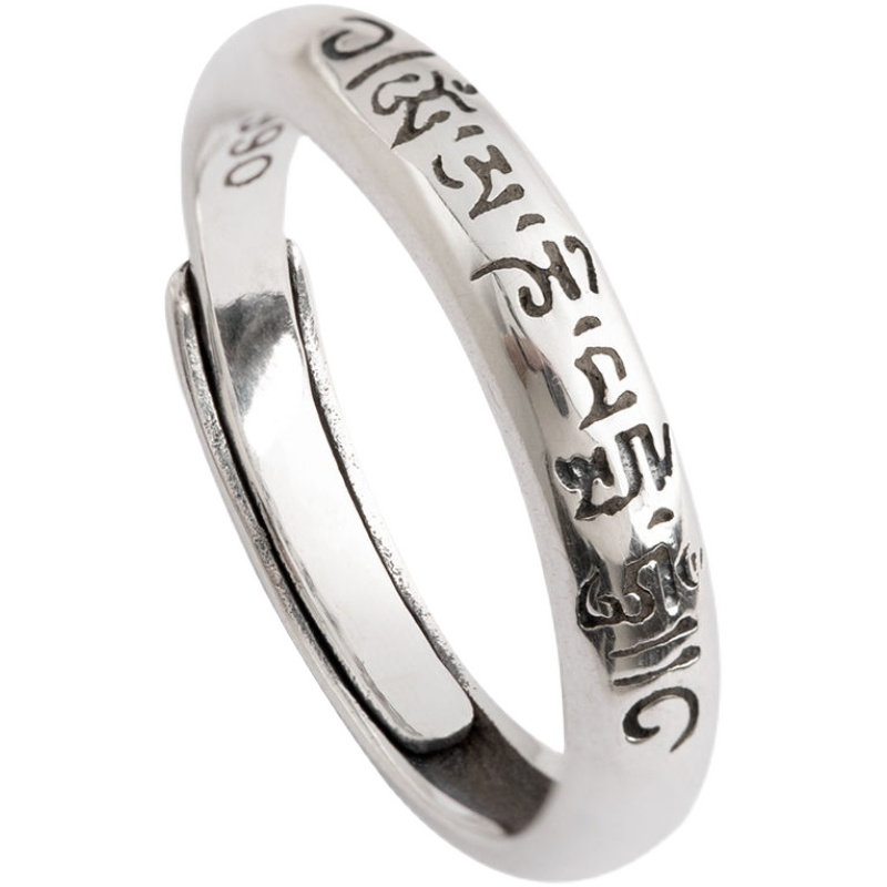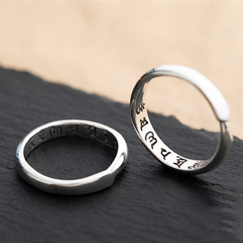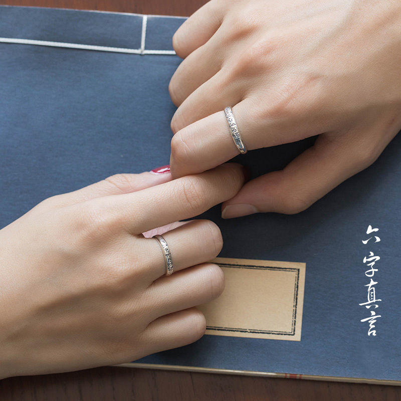 平安转运六字真言戒指环男女情侣款对戒招财复古潮可T调节S925纯