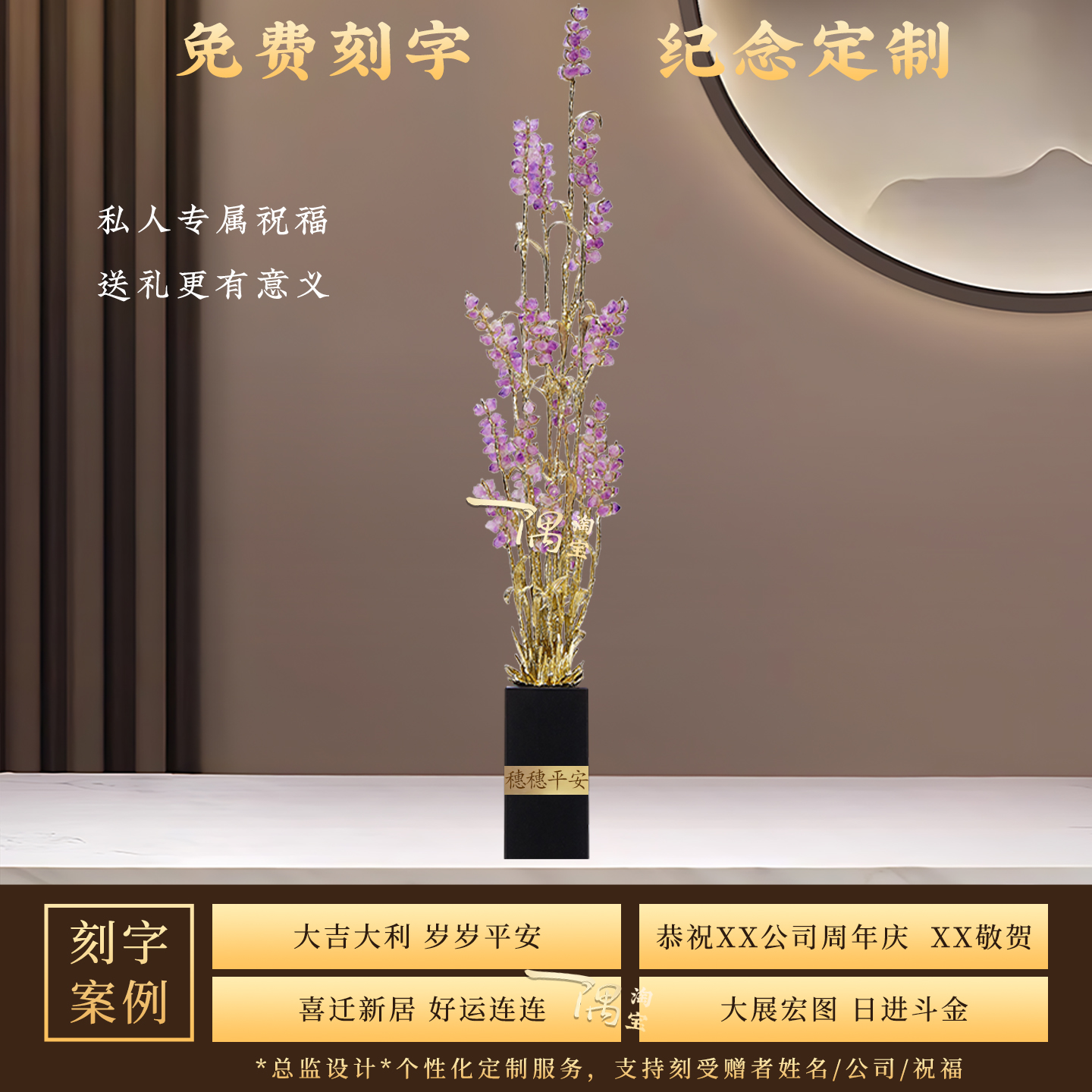 轻奢紫水晶麦穗摆件高档客厅玄关电视柜旁装饰品旺宅乔迁开业礼物