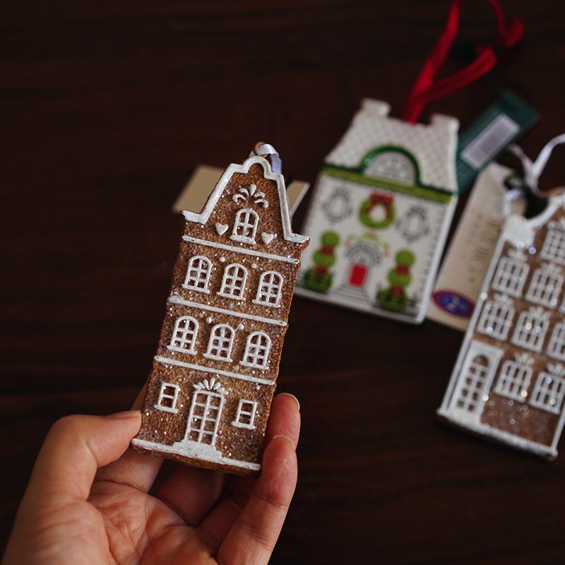 圣诞树装饰挂件 出口欧式姜饼人房子造型陶瓷树脂圣诞树挂饰 礼物