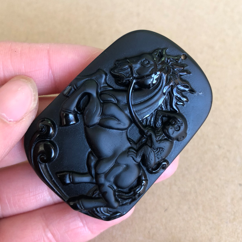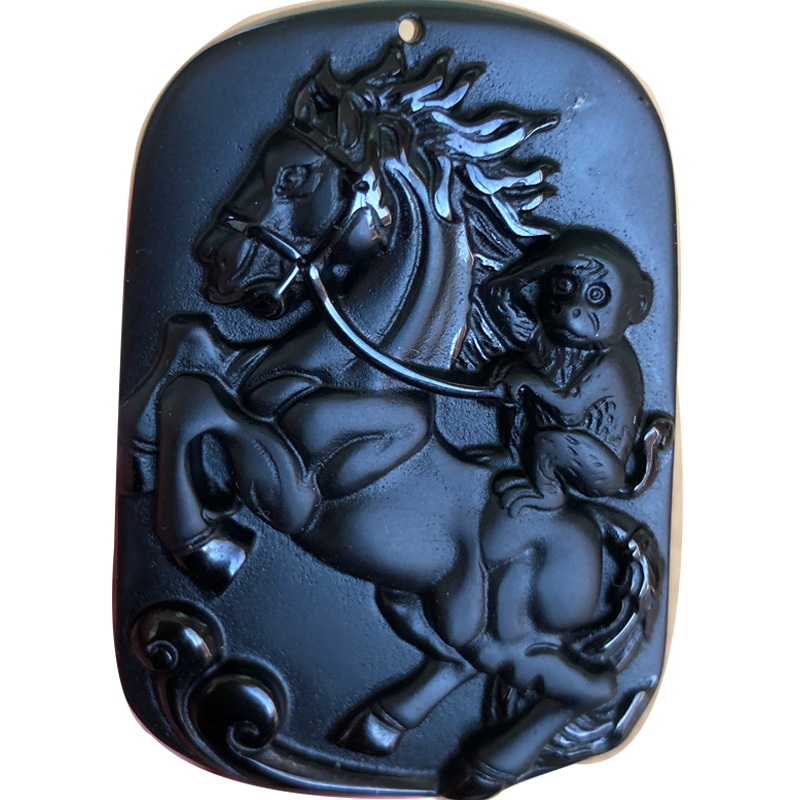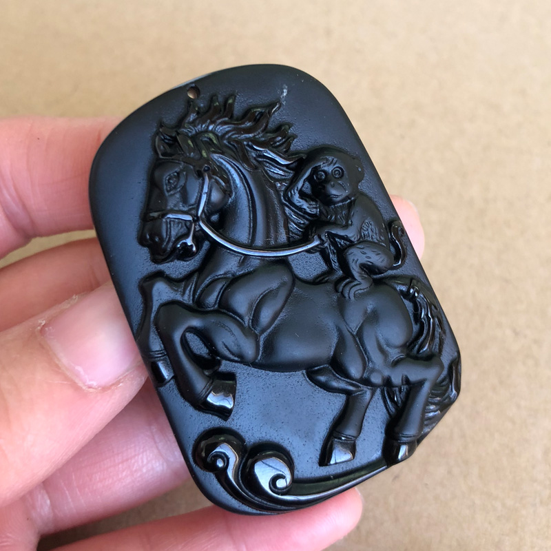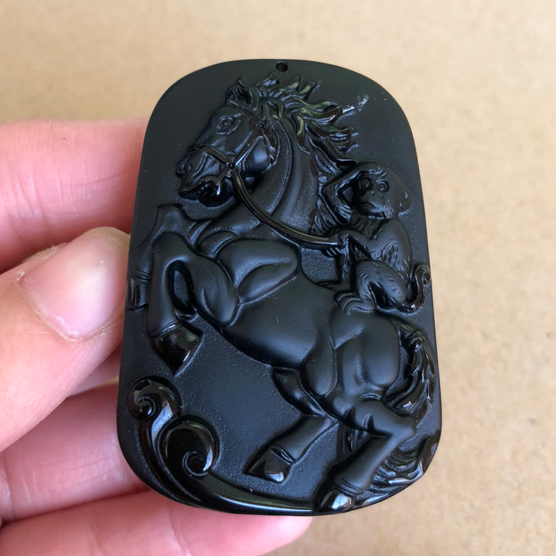 黑曜石马上封侯吊坠项链男女招财转运挂件饰品挂坠助运送证书