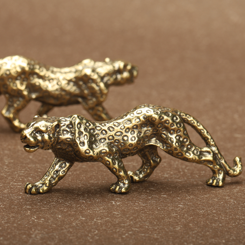 创意纯黄铜实心一路暴发金钱豹手把件挂件古玩摆件随身把玩收藏品