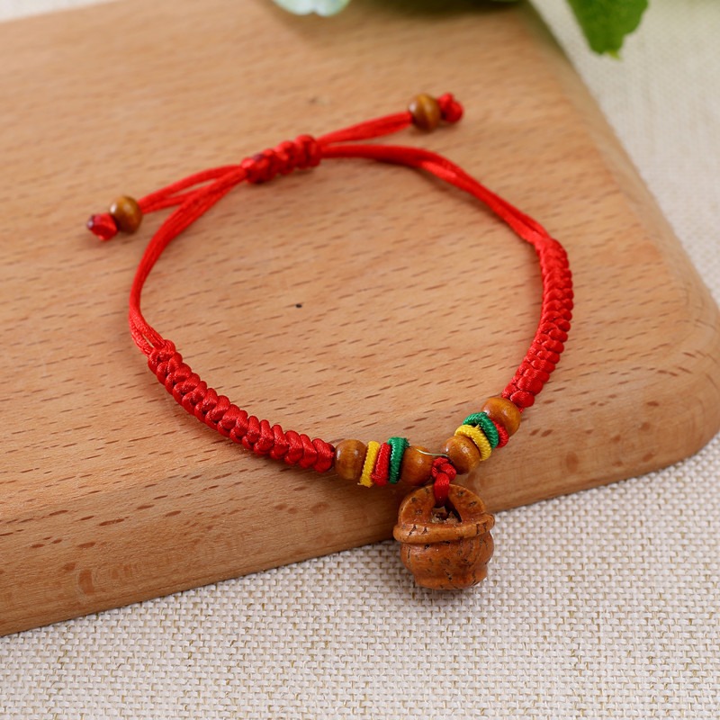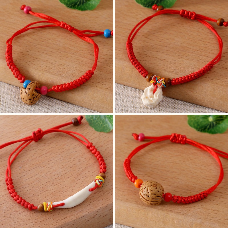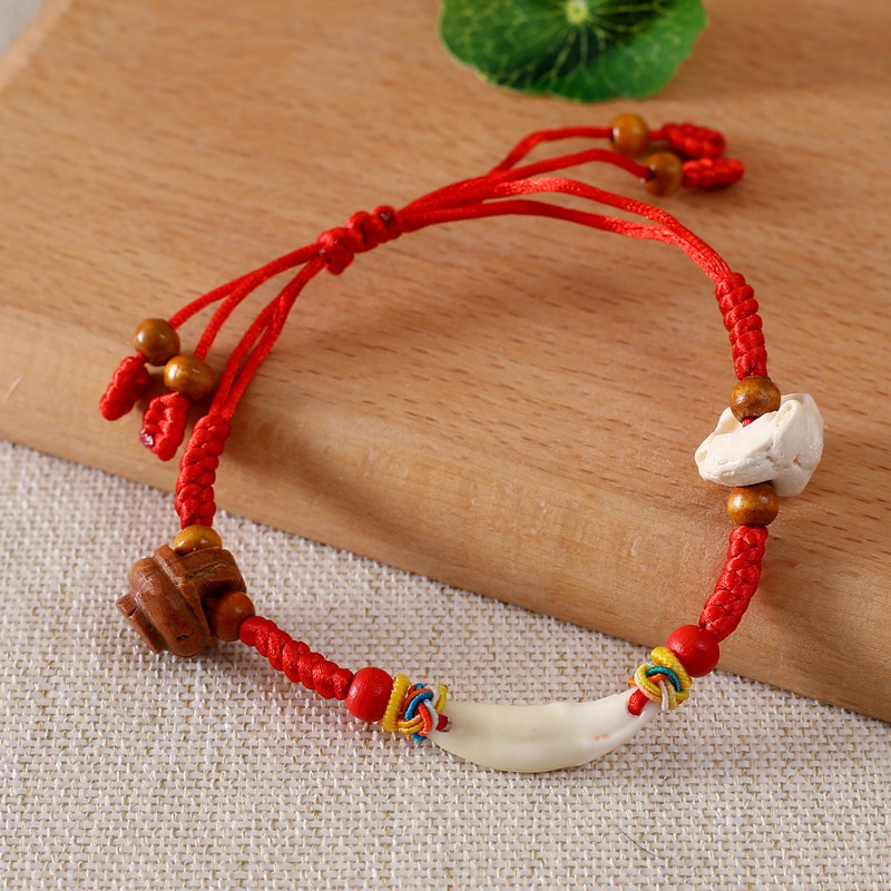 儿童宝宝孕妇防惊吓压惊狗牙红绳手链手工编织猪惊骨桃核桃篮手绳