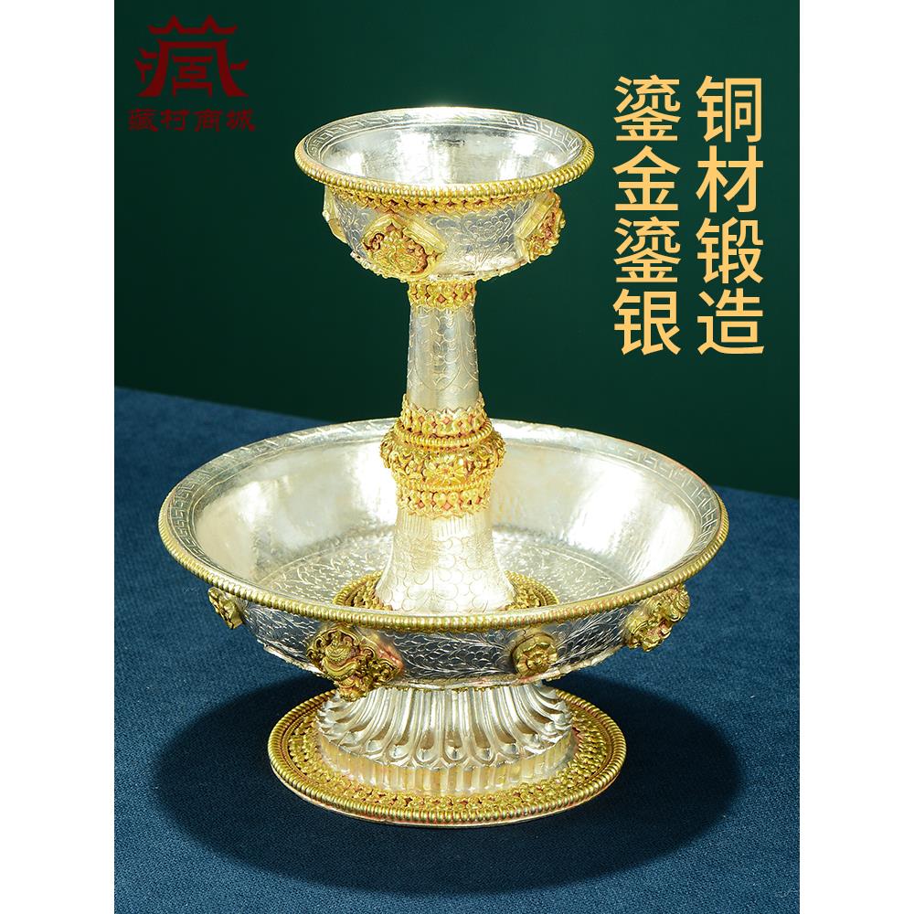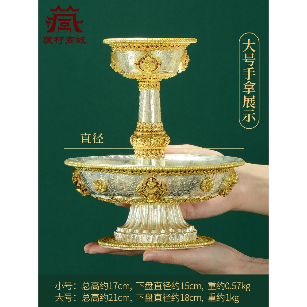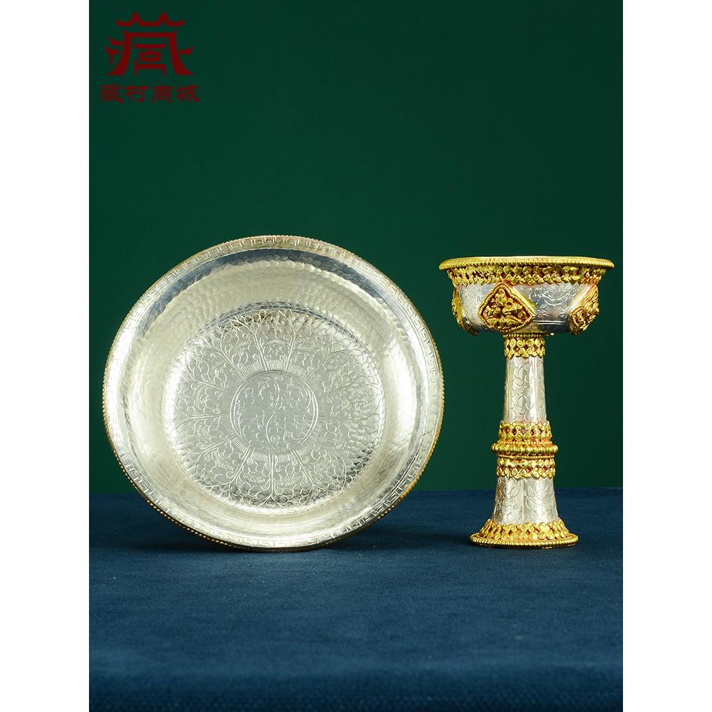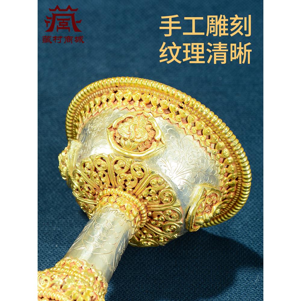 尼泊尔手工护法杯八吉祥雕花供杯家用圣水杯高脚鎏金鎏银供水杯
