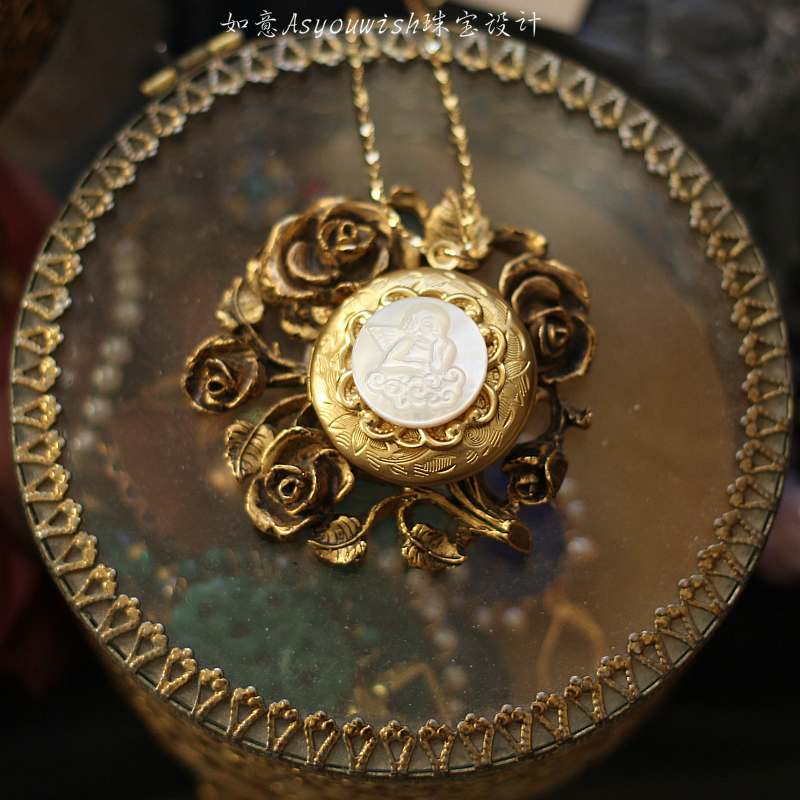AYW皎月-西洋回流古董14K包金照片相片盒吊坠vintage女项链锁骨链
