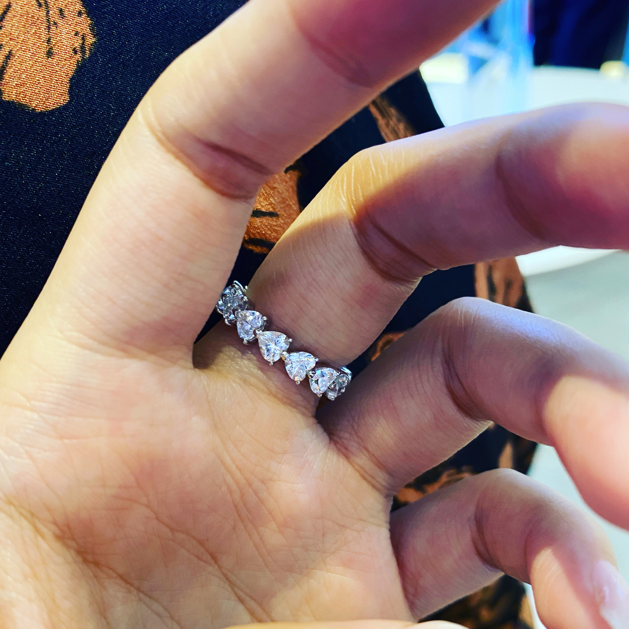纯银爱心排钻戒指女高碳钻ins网红款心形排戒副戒叠戴镀18K金戒指