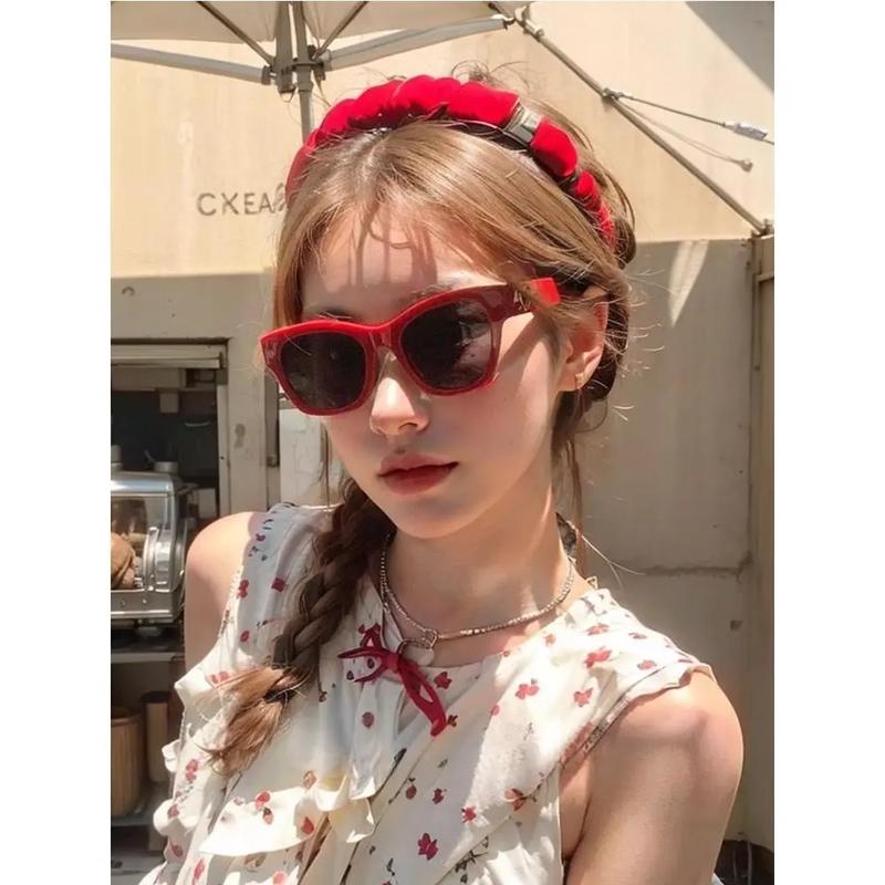 少女风覆古红色素颜百搭方圆脸显脸小法式抗UV太阳眼镜女款方形潮