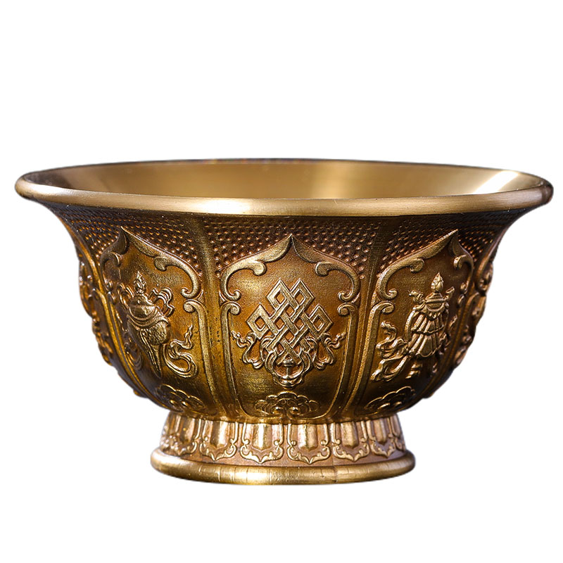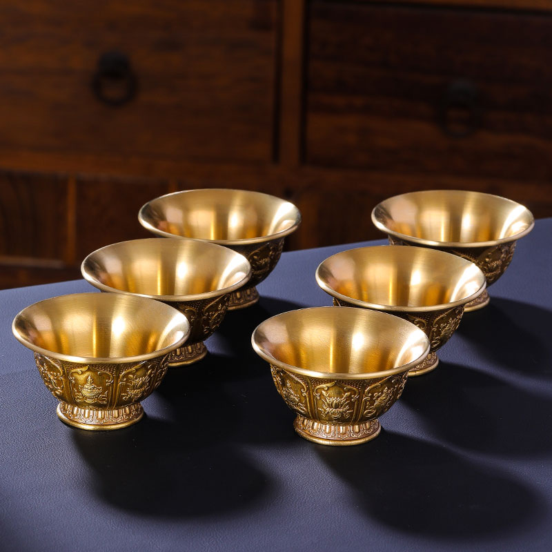 速发八吉祥供水杯供佛杯纯杯佛前供铜摆件家用矮脚供水碗八供杯圣