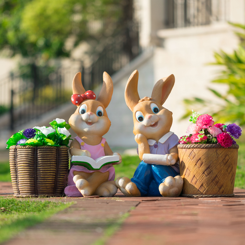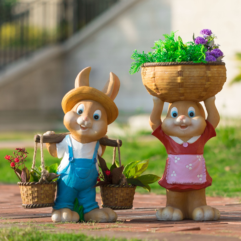 动物花盆可爱兔子花缸卡通创意阳台装饰庭院户外幼儿花园树脂摆件
