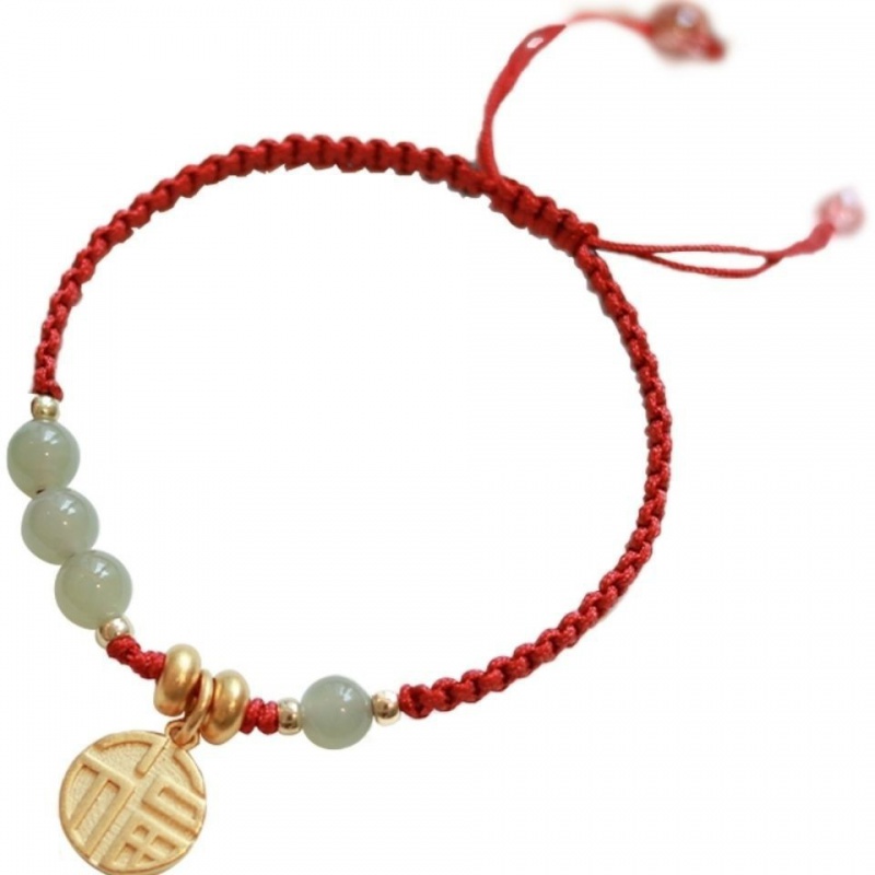 新款网红时尚和田玉手串手工编织红黑绳福牌手链闺蜜学生情侣手饰