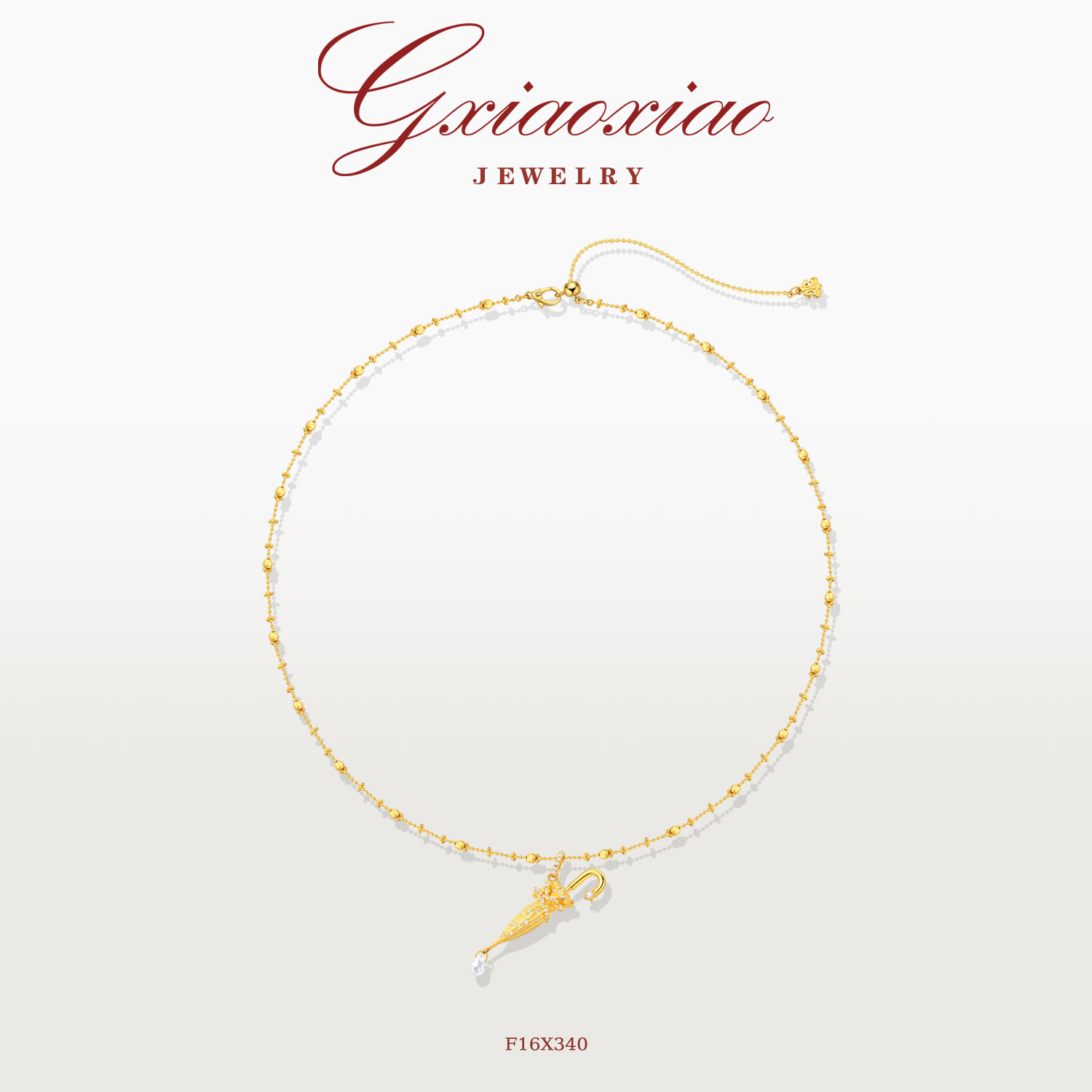 G XIAOXIAO 镀K金 新中式气质轻奢复古雨伞项链 F16X340 F16X341