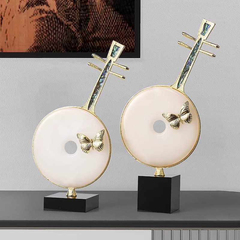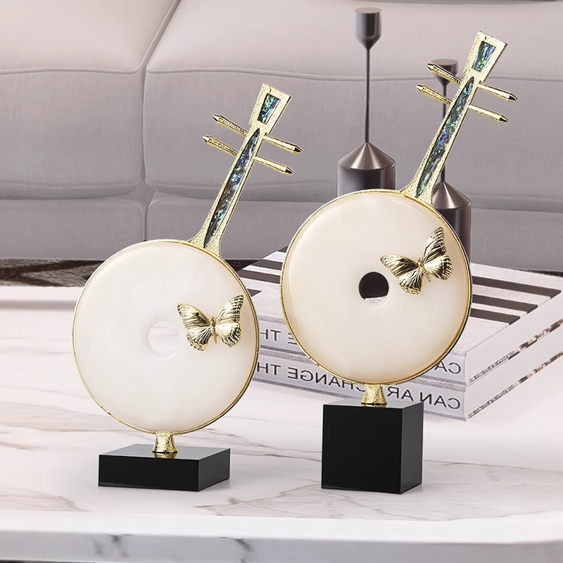 威弗列德新中式高档玉石平安扣摆件琵琶装饰品客厅电视柜轻奢摆设
