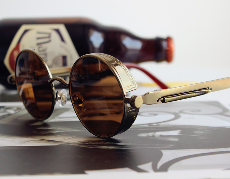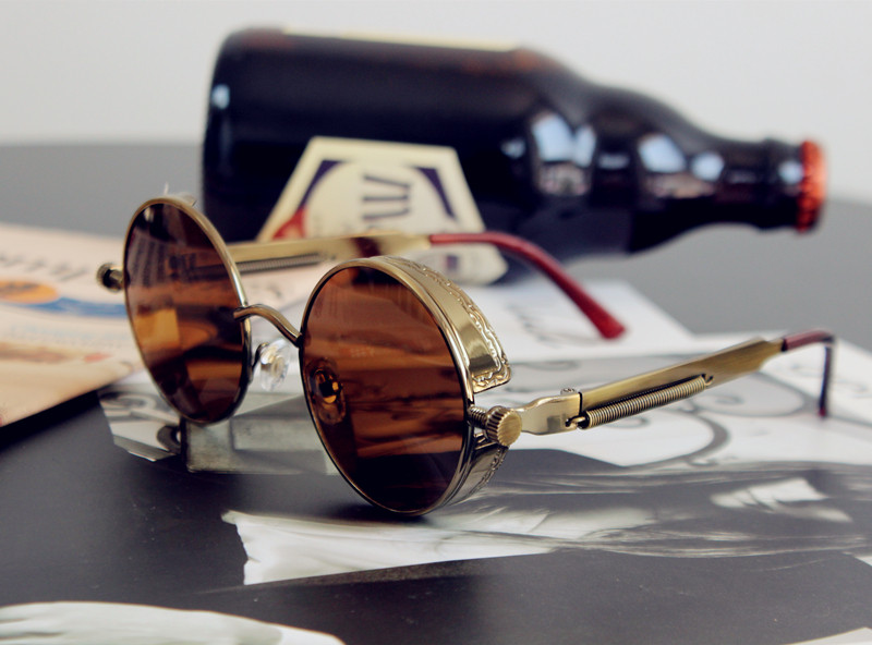 复古圆框太阳镜茶色男女链条太子镜蒸汽朋克太阳镜重金属原宿墨镜