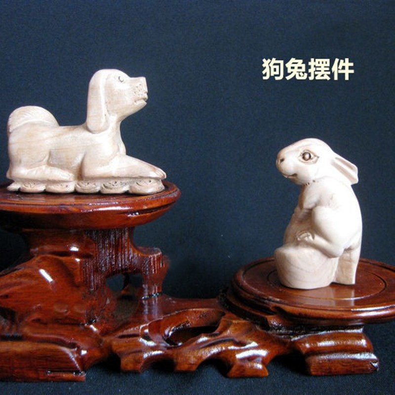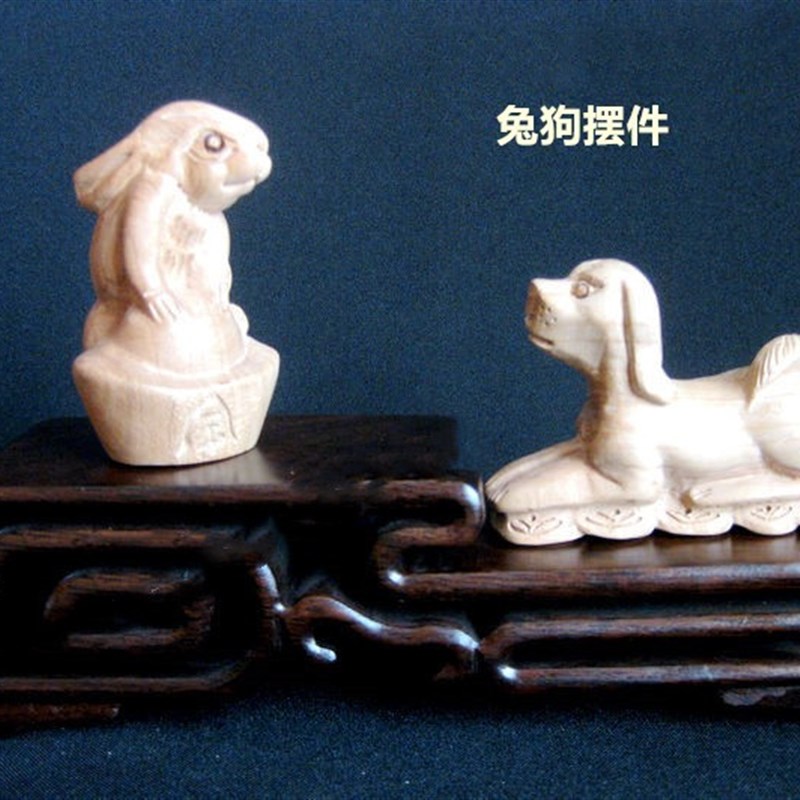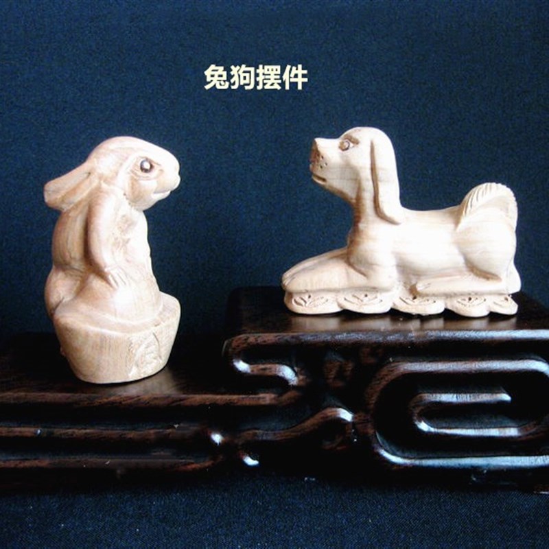 桃木六合生肖兔狗摆件属兔狗者书房办公室酒柜桌面平安吉祥礼品