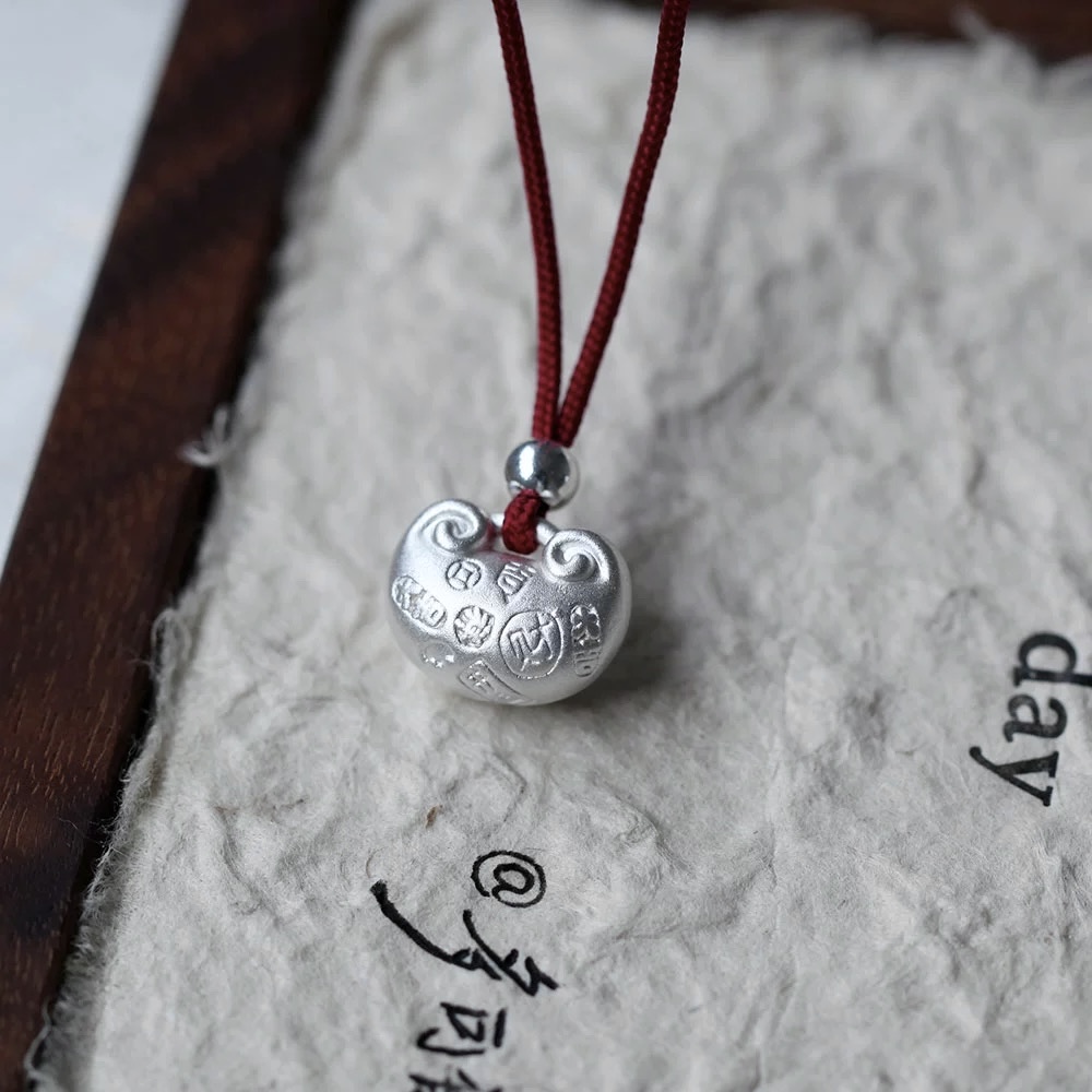 吉言锁包开运招财足银999平安锁吊坠新中式红绳银饰项链女国潮风