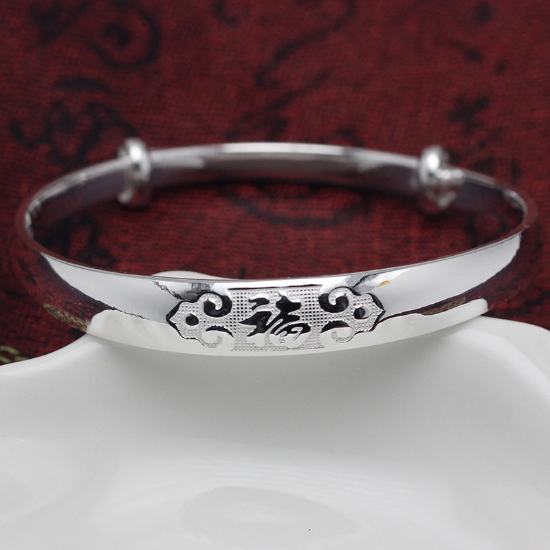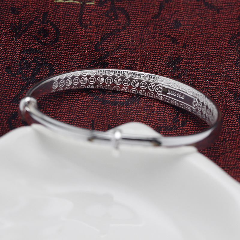 香港正生纯银9999纯银手镯 推拉福光面 足银手环银镯子 女式老人