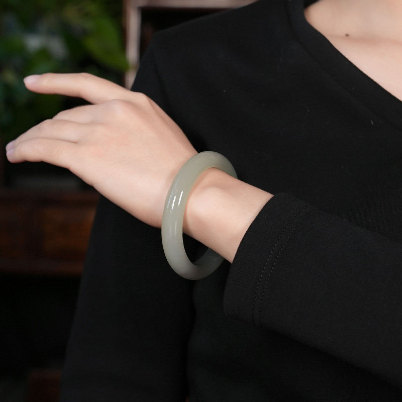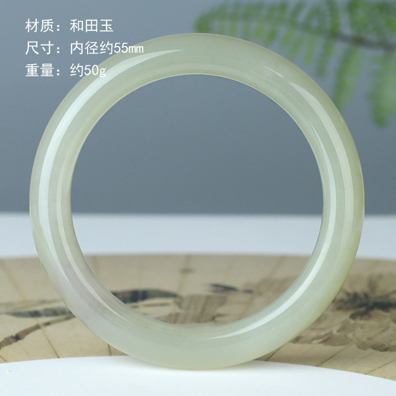 玉友和田玉手镯女款玉镯子青白淡紫富贵春彩玉镯内径约55mm附证书