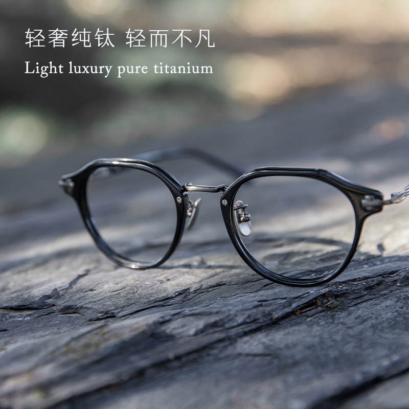 日系超轻纯钛近视眼镜男款时尚大框大脸显瘦可配度数散光变色镜架