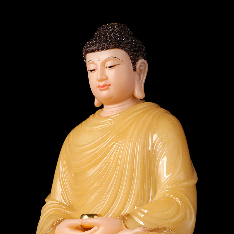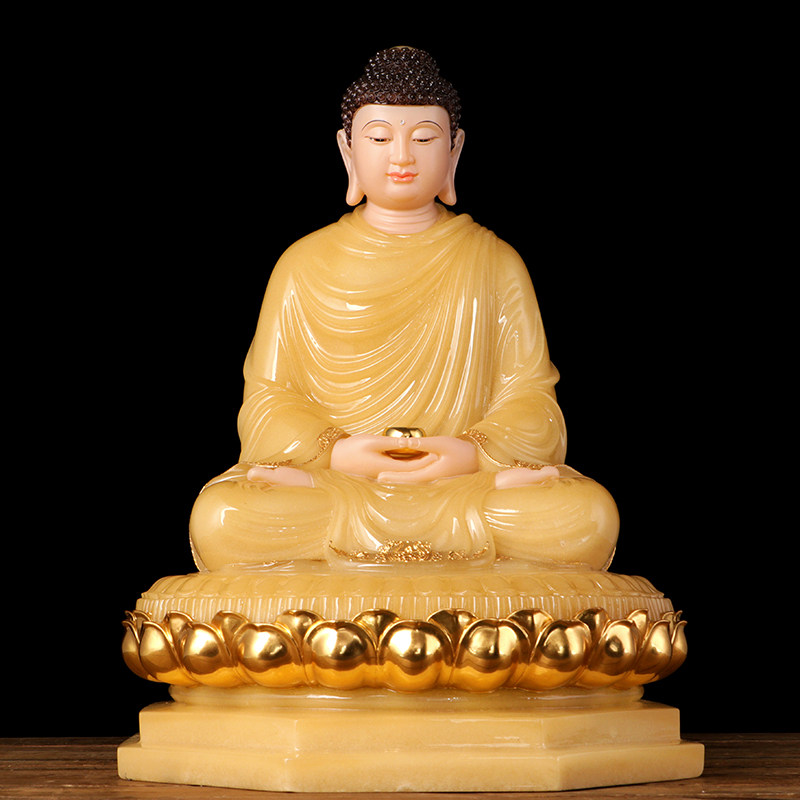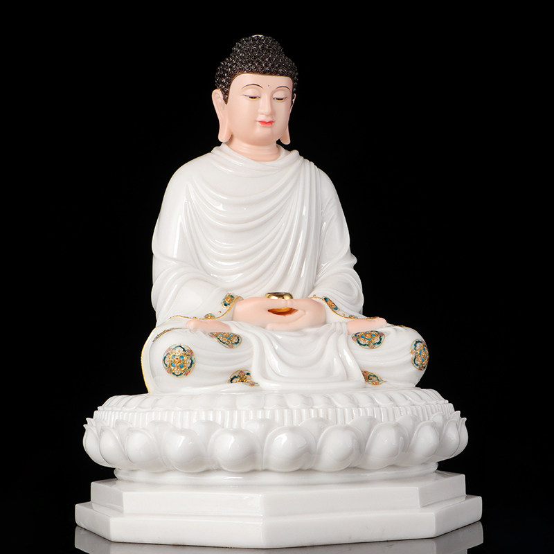 圆通佛具汉白玉释迦牟尼佛像家用供奉释迦摩尼佛娑婆三圣客厅摆件