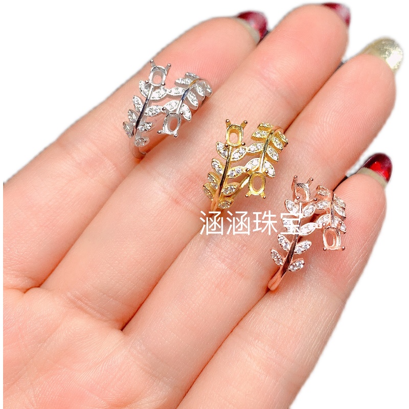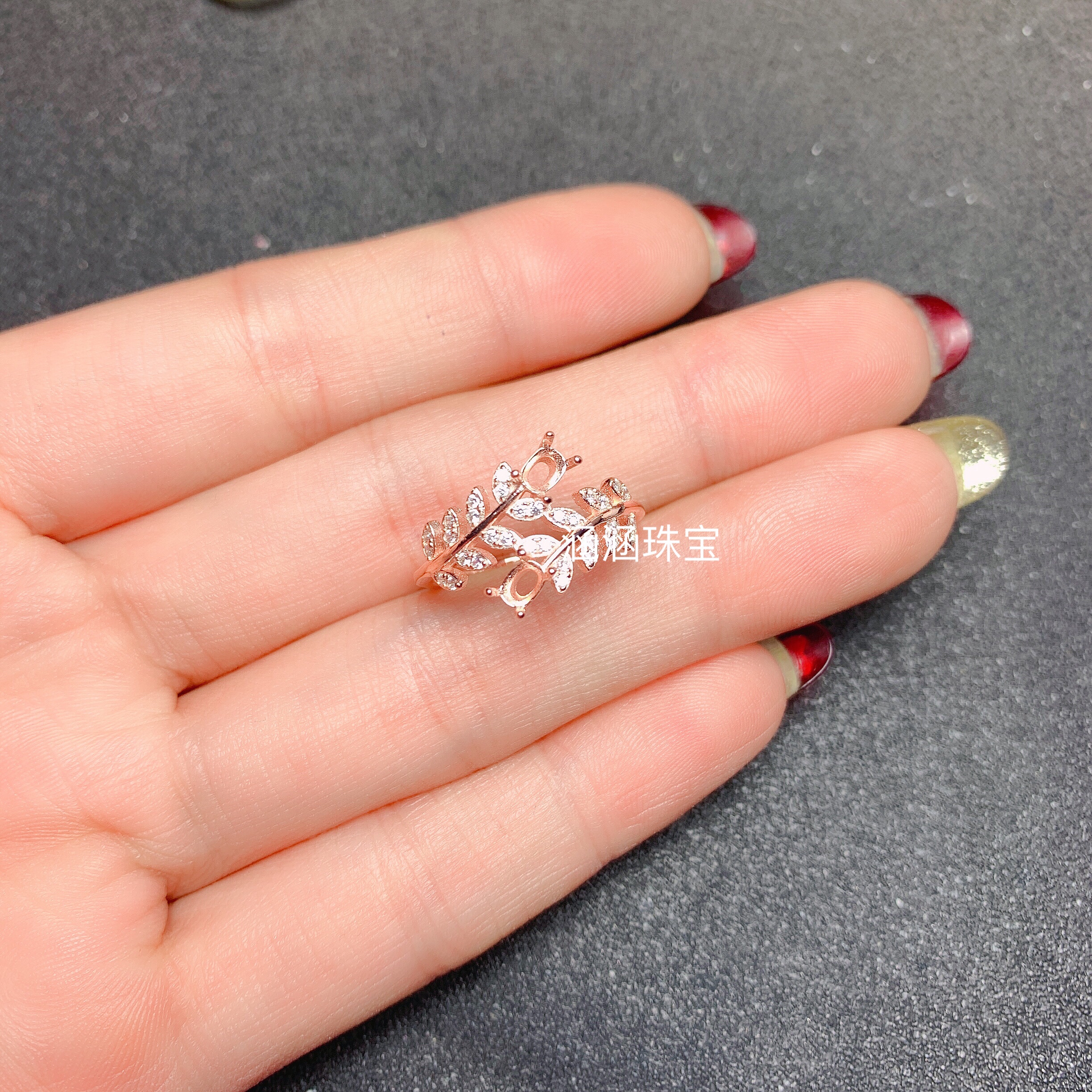 s925银饰品戒指空托2粒款 椭圆形3*4mm代镶碧玺 蓝宝石 祖母绿