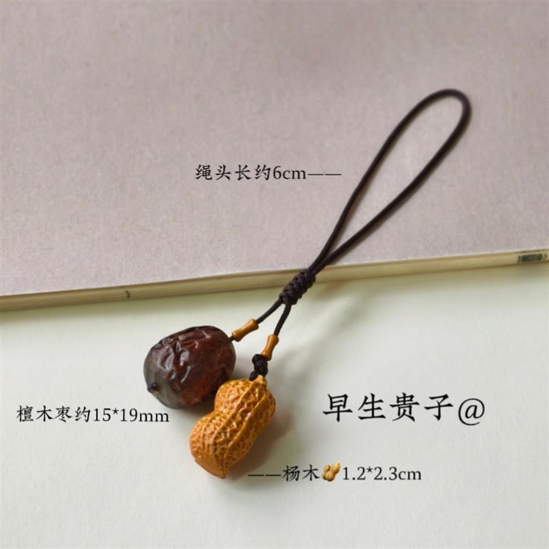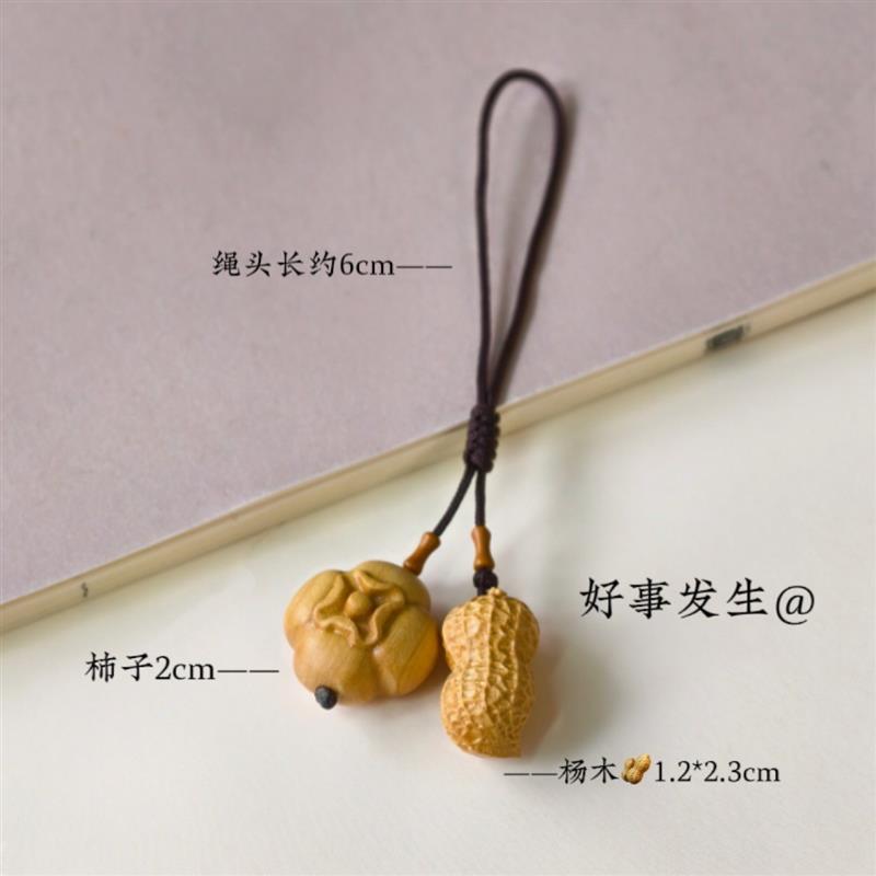 天然黄杨木提溜枣生贵子好柿发生手机挂件吊坠挂饰备孕平安
