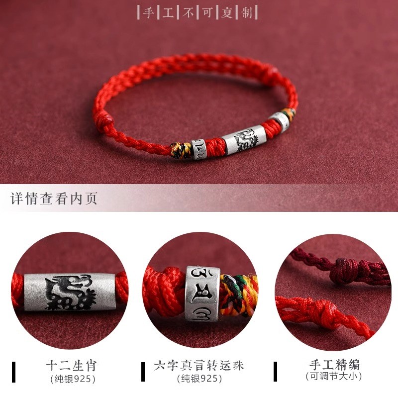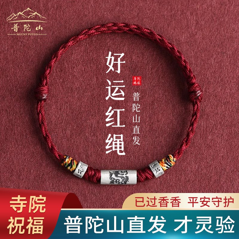 普陀山十二生肖红绳手链女属龙蛇本命年脚链男手工编织转运珠手绳