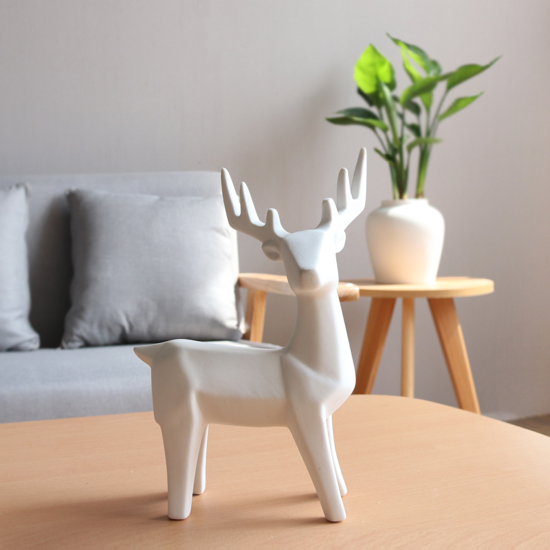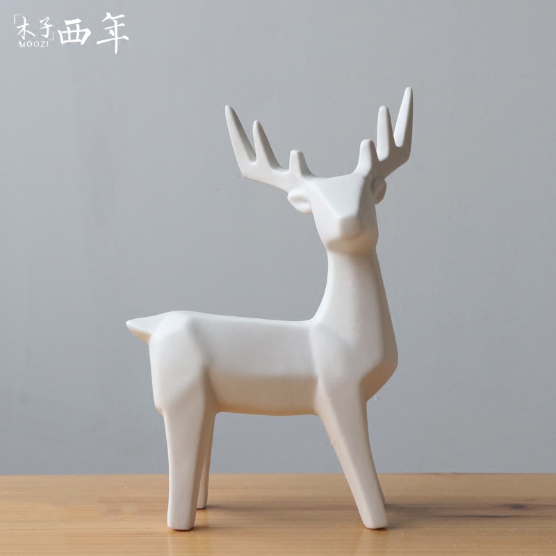 陶瓷北欧式创意家居工艺品客厅白色摆件动物麋鹿ins简约现代装饰