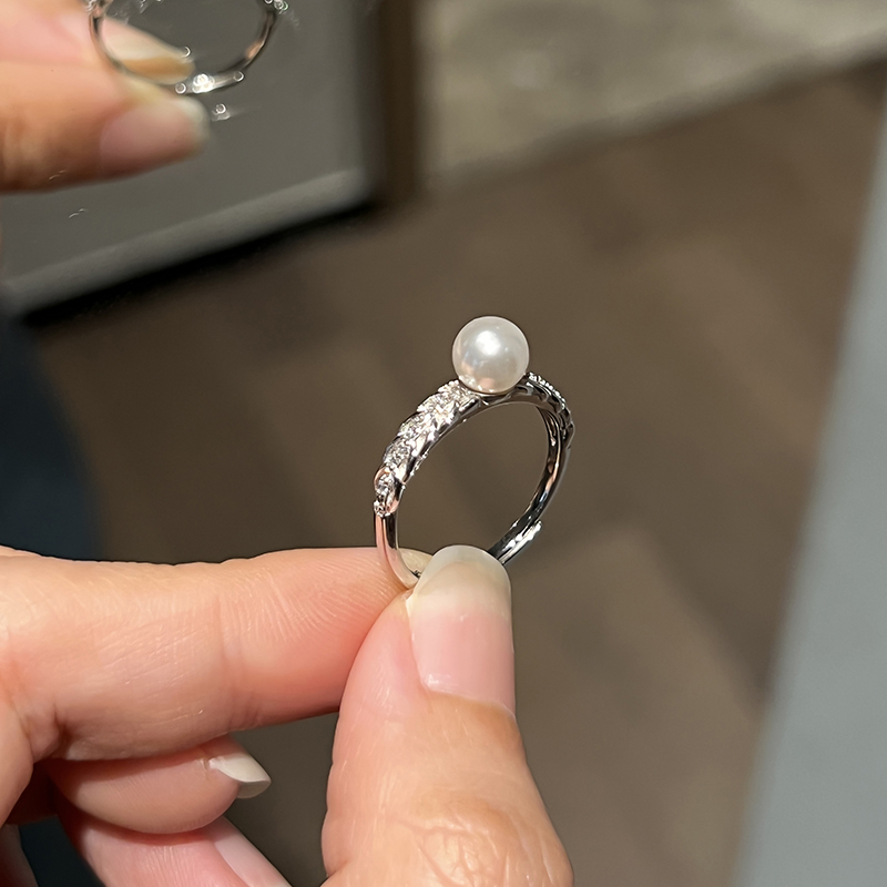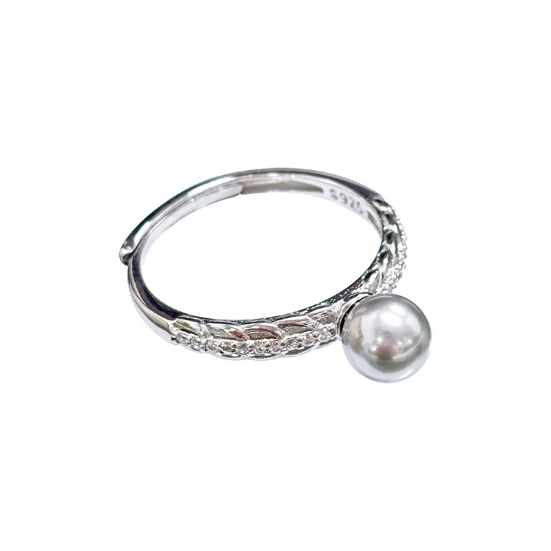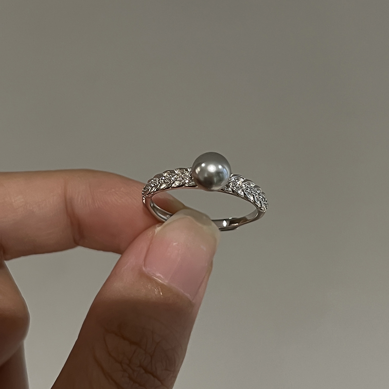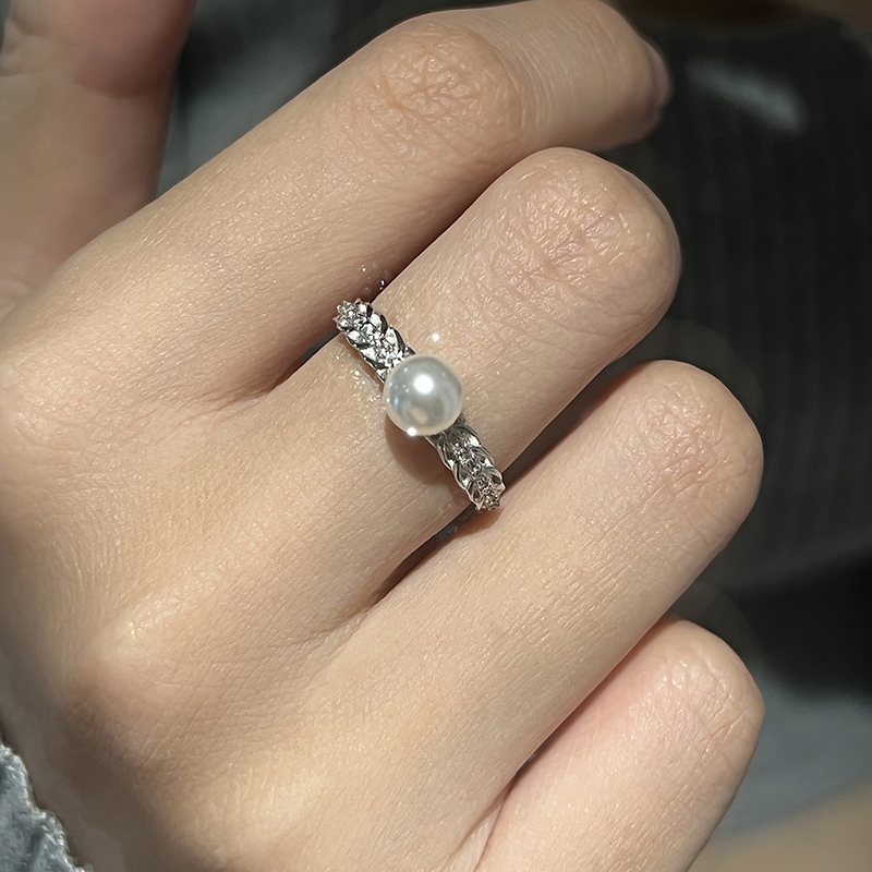 方糖家 精致轻奢S925纯银麦穗锆石施家珍珠可调节指环高级食指戒