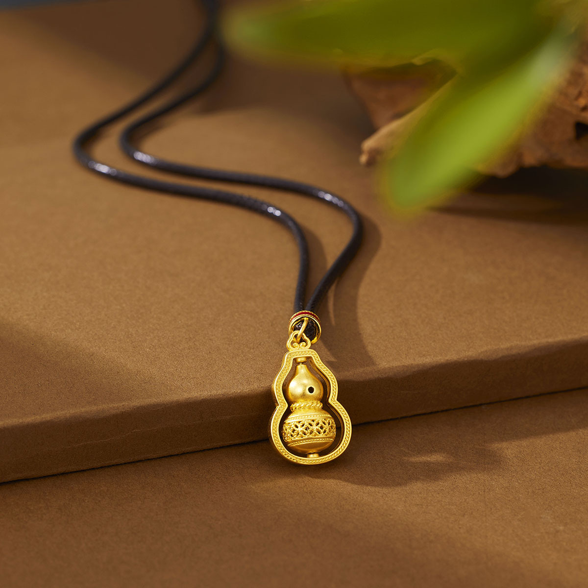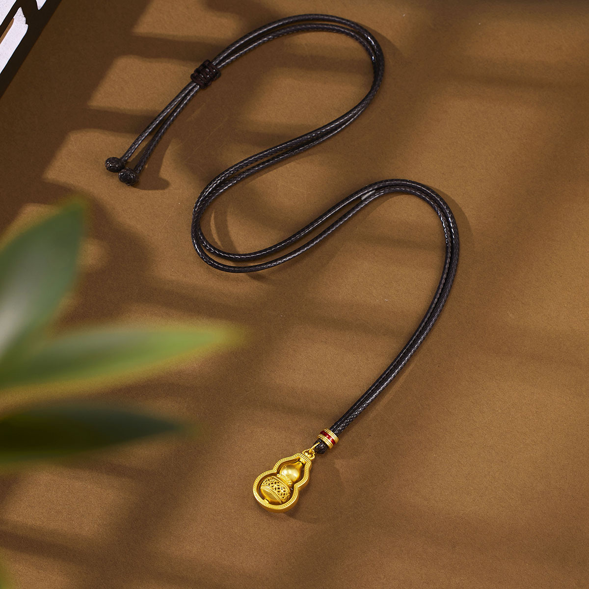 s925纯银镀黄金色韦雪同款福禄葫芦编织绳项链时来运转毛衣链男女