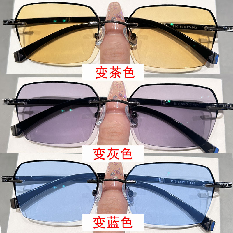 无框眼镜男近视配有度数散光黑边平光无边框多边形变色防蓝光防雾
