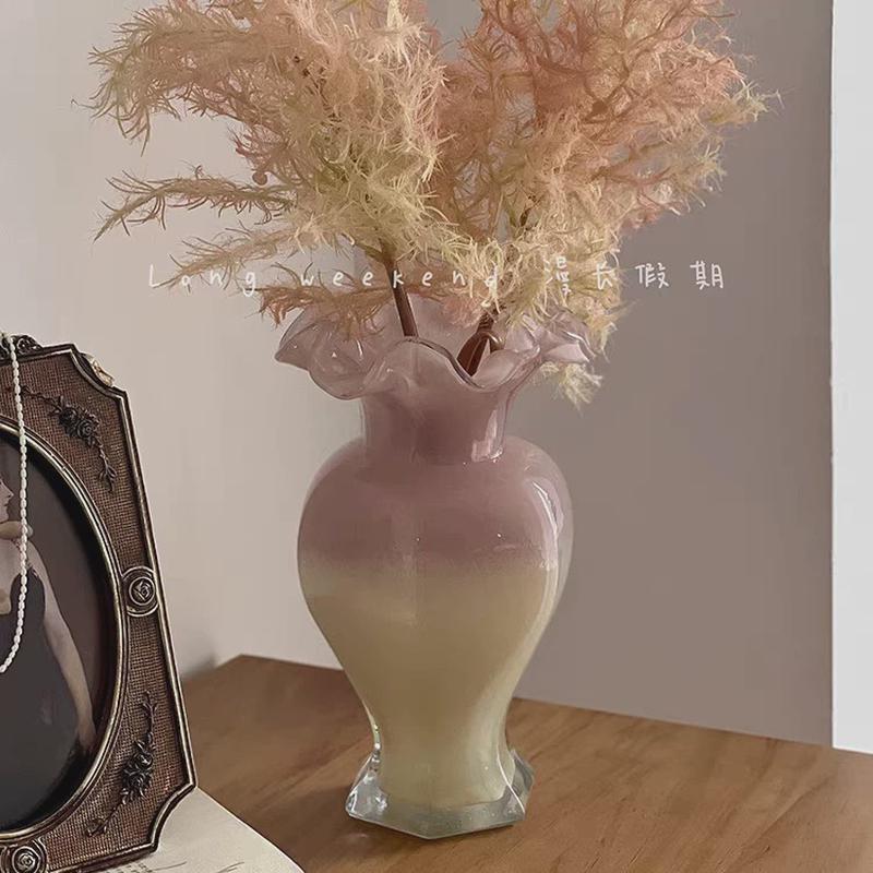 美式轻奢玻璃花瓶高端桌面装饰摆件复古白色紫色水培花器